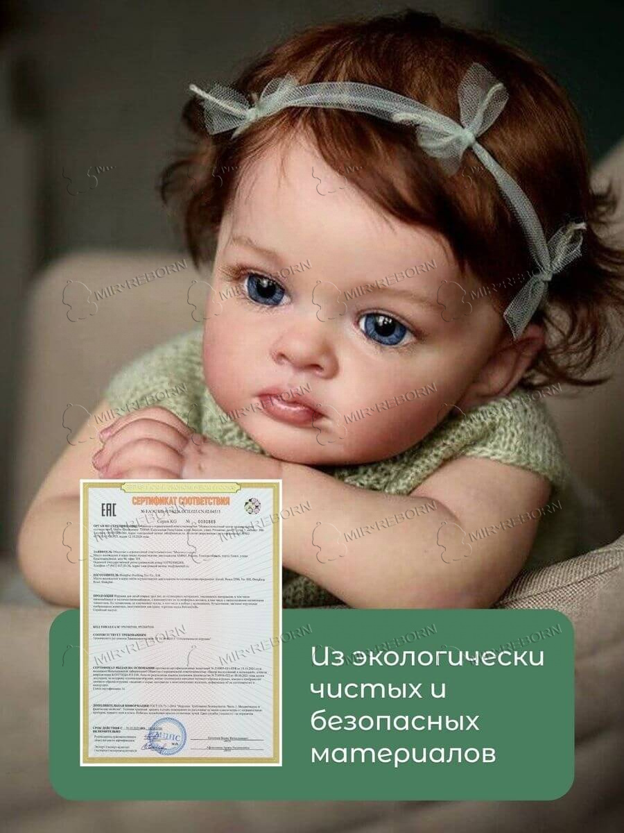 Реборн кукла девочка полностью безопасна для людей. Реалистичная кукла изготавливается из натуральных гипоаллергенных материалов и проходит соответствующую сертификацию.